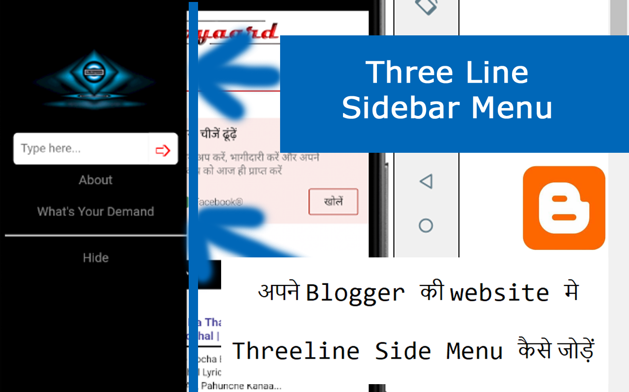 How to Add three line menu on your blogger / blogspot Website